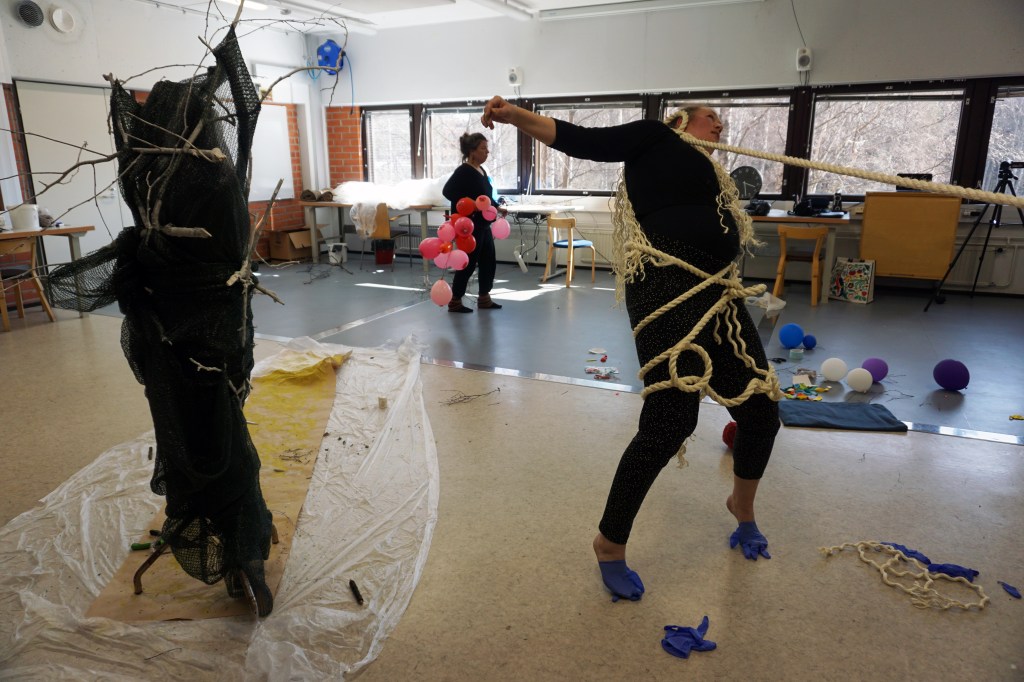 (2021) and Life, costume design and realization, object choreography, co-spatial design and content development with the working group. Director: Elina Hauta-aho. Maunulatalo, Helsinki