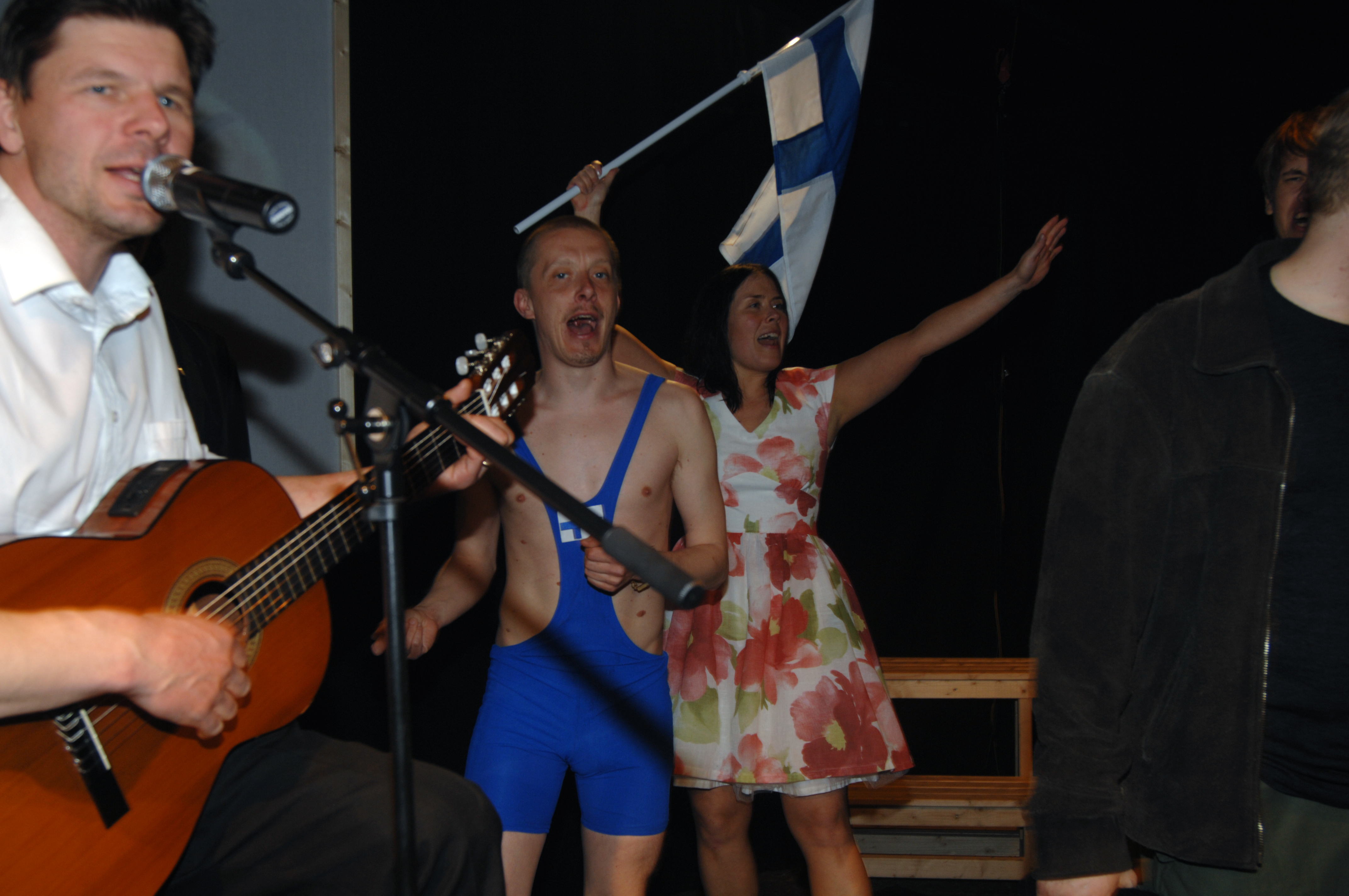 direction and adaptation of original script: Maria Hyökyvaara // playwright: Kristian Smeds // on stage: Tommi Taurula, Jani Honkaselkä, Mikko Hietanen, Esa Kytösaho, Jenni Rahunen and Maria Hyökyvaara // set design: Maria Hyökyvaara // costume design, props and on set manager // Susanna Suurla // live feed video: Tomi Laitinen // sound design: Marko Pakarinen // lighting design: Esa Kytösaho // costume and prop trainee: Suvi Purmonen // set construction: Petteri Jarmala // production: Lenkkiteatteri, Maria Hyökyvaara and Laura Rautjoki // photographs: Laura Rautjoki